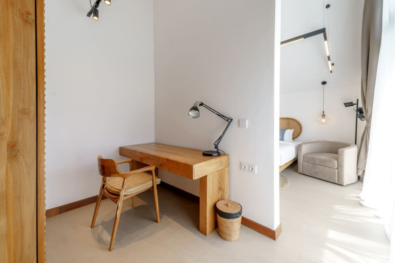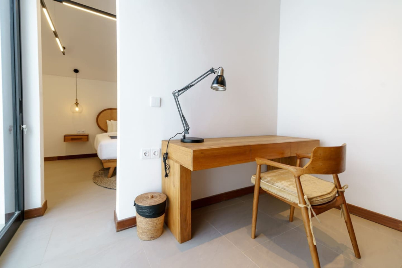 Dive into the peaceful ambiance of Umalas in our beautifully crafted two-level villa. With two bedrooms, each equipped with its own bathroom and workspace, this place is perfect for both relaxation and productivity. The centerpiece is the generous living space that opens up to a private pool and verdant terrace, offering a sanctuary of calm and connection. Just a stone’s throw from the dynamic atmosphere of Canggu, a tranquil but lively Bali adventure