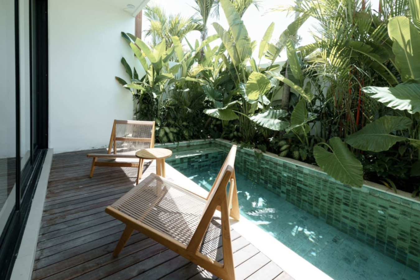 Our villa in Umalas offers a perfect blend of contemporary luxury and the peaceful Bali lifestyle, making it an ideal choice for families and remote workers alike. It boasts two bedrooms, each with its own private ensuite and workspace. The spacious kitchen and dining area provide ample space for gatherings, while the private pool and tropical terrace offer a serene retreat. Located just a short distance away from the excitement of Canggu