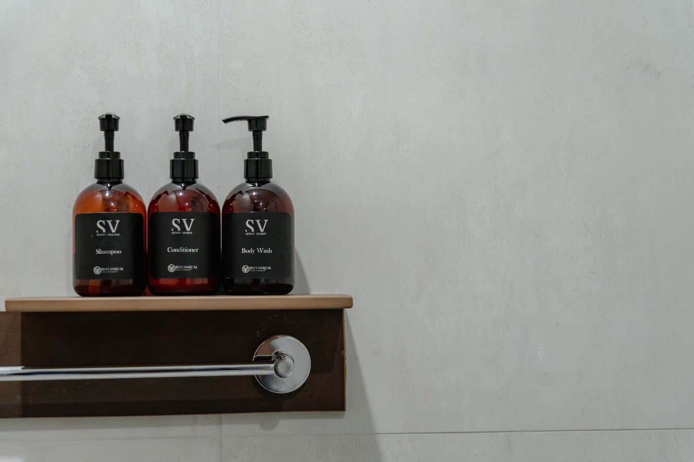 – Premium botanical toiletries, including soap, shampoo, and conditioner for a refreshing experience.