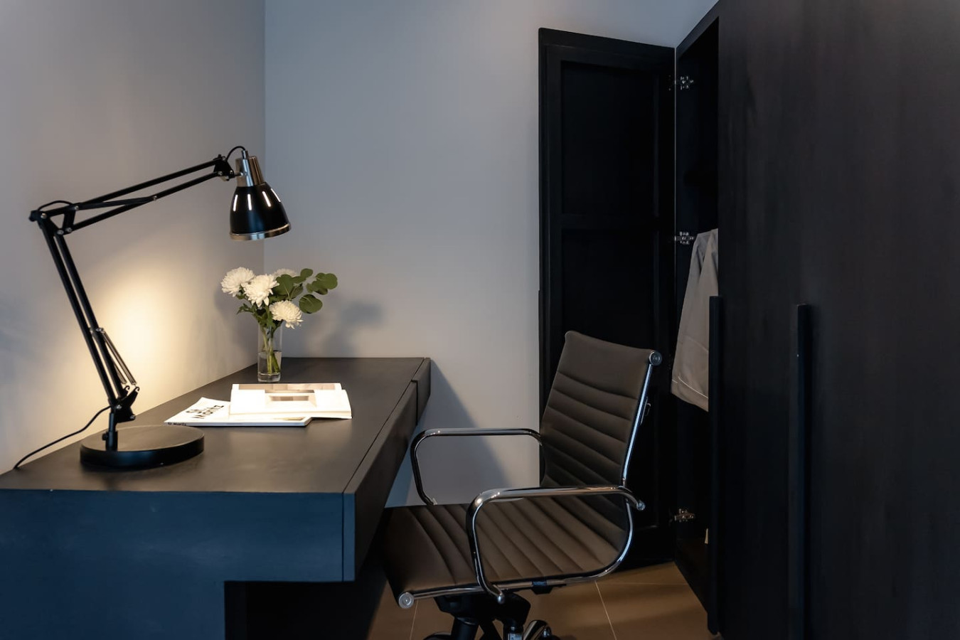 – Workspace: Private, dedicated desk and chair tailored for work or creative moments.