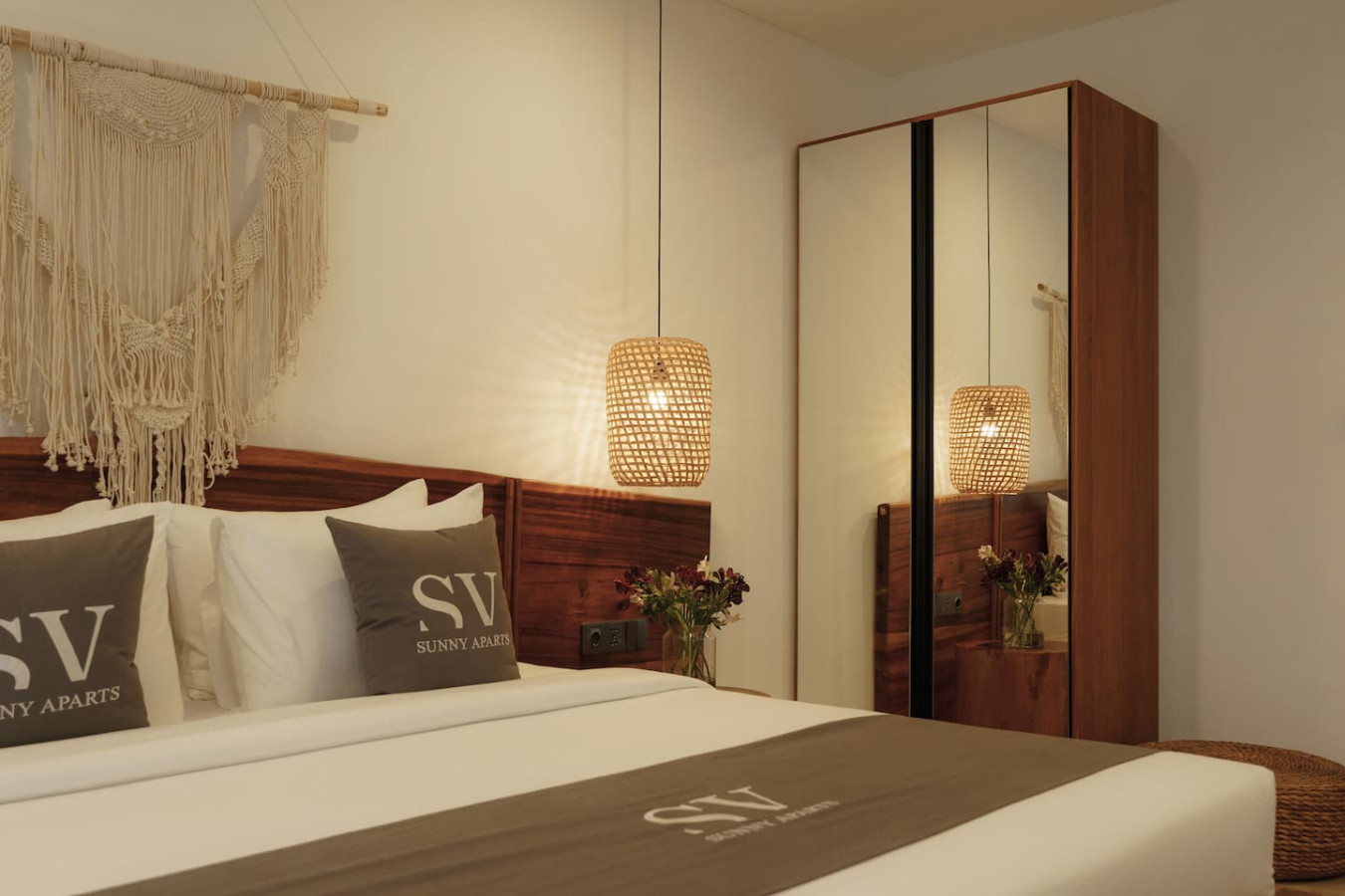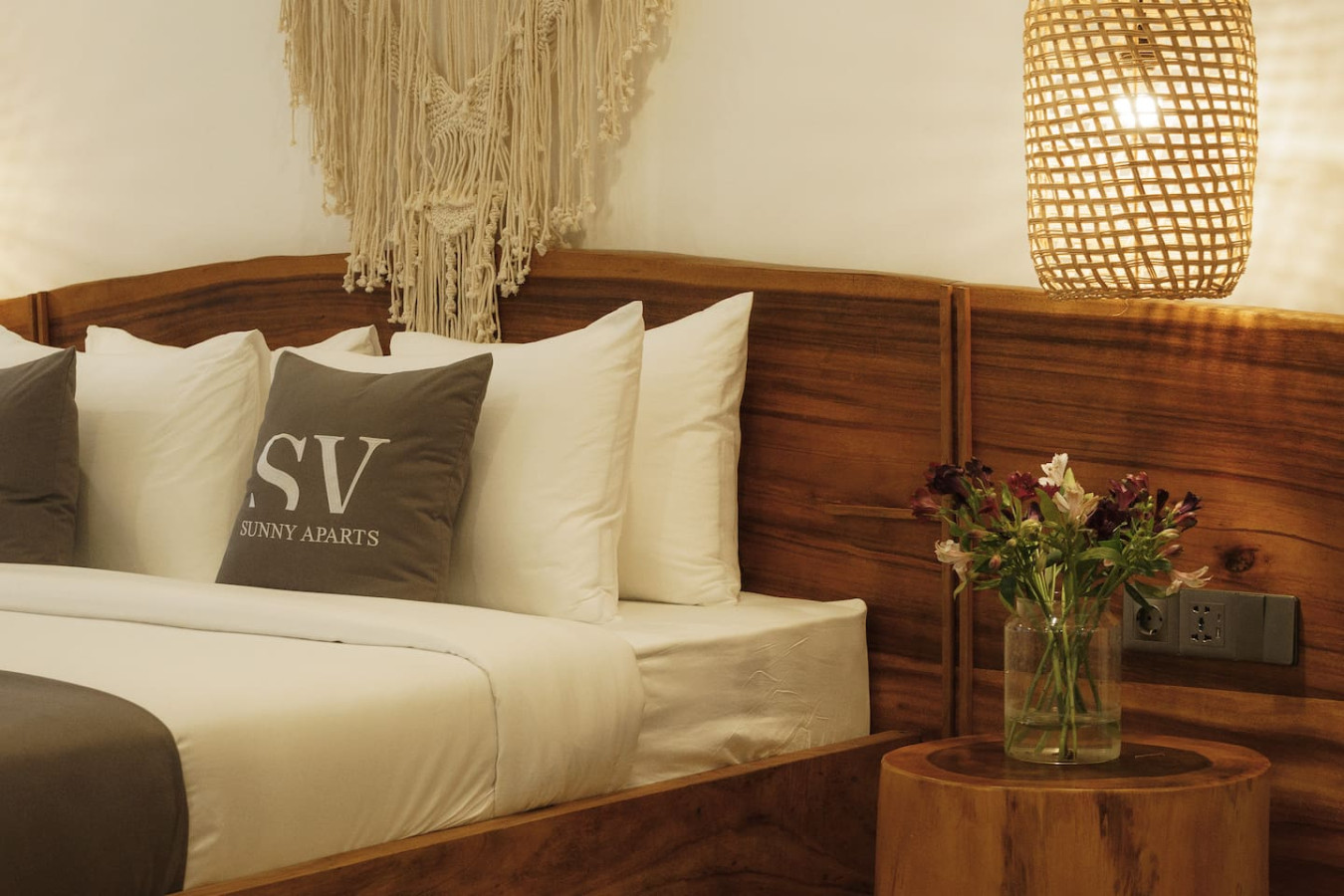 – King-sized bed with luxurious cotton linens, designed for a restful and rejuvenating night.