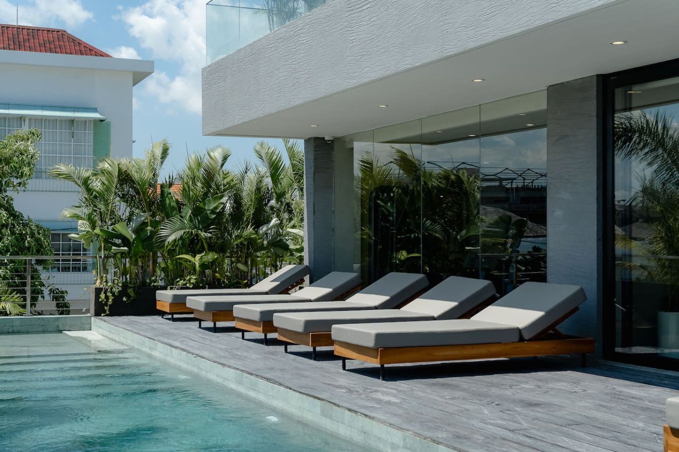 Elevate your Bali experience in our exclusive retreat located in the prime Berawa area. Rejuvenate in our luxurious spa with an ice bath, hammam, and sauna, or maintain your fitness in the state-of-the-art gym. For those seeking productivity, our professional podcast and recording studio is at your disposal. Unwind at the pool and experience Bali’s charm from a location that offers both luxury and convenience. Book your Bali escape today!