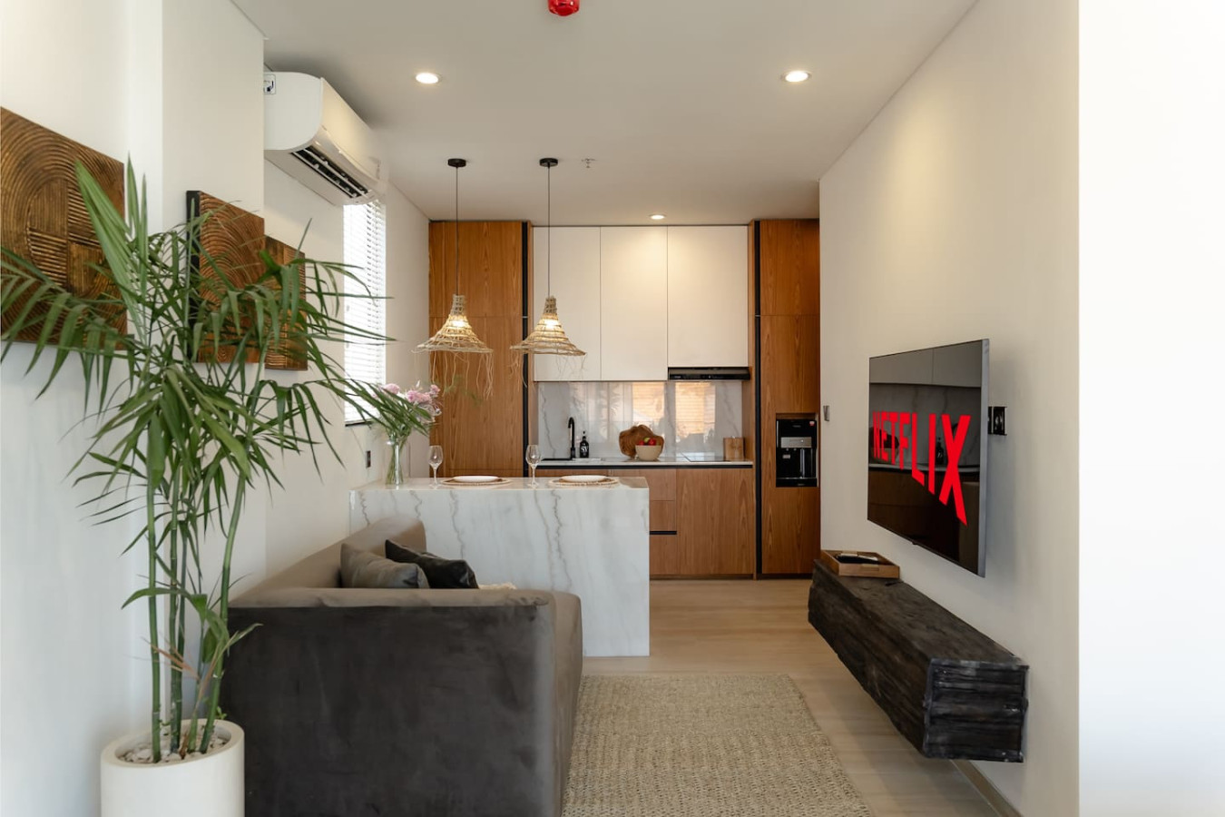Апартаменты супер ! Есть все для жизни и даже на столько , что не хочется выходить за пределы ( хороший ресторан , бассейн , спа с сауной и массажем , зал ) . Хорошая, тихая локация недалеко от пляжа , есть парковка для машины . Отзывчивый персонал , который дополнил комфортное пребывании. Однозначно всем рекомендую, кто ценит комфорт и сервис !