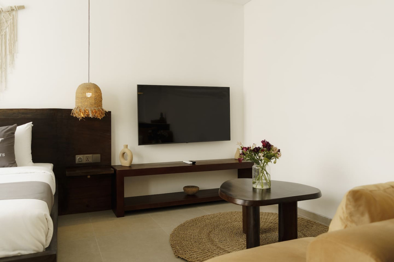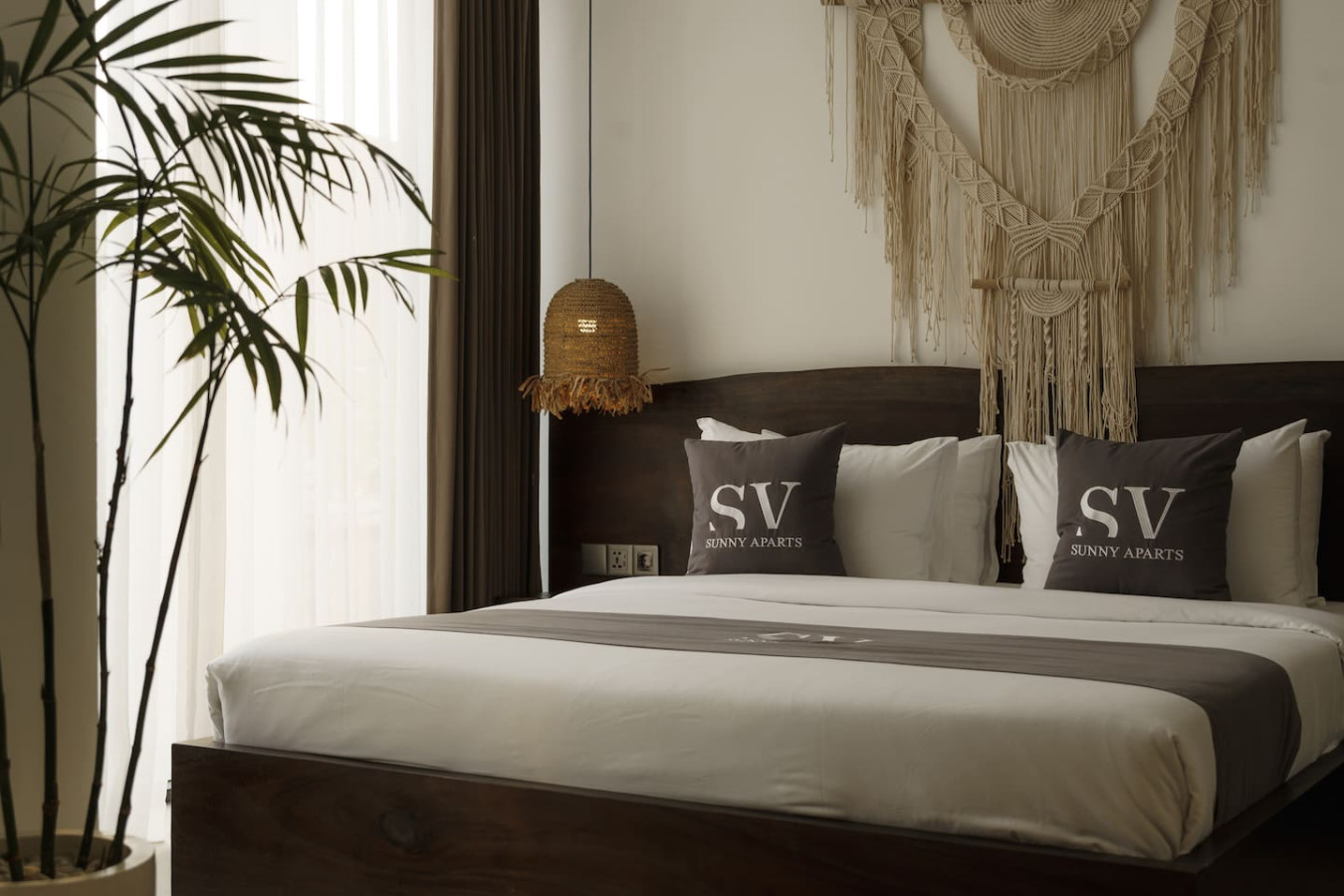 – King-sized bed dressed in premium cotton linens for the ultimate sleep experience.