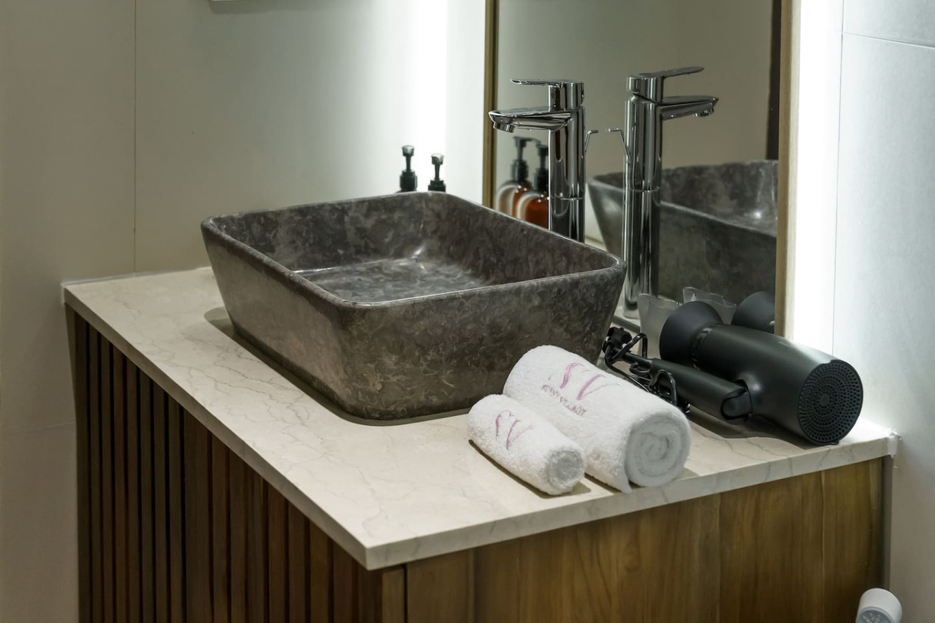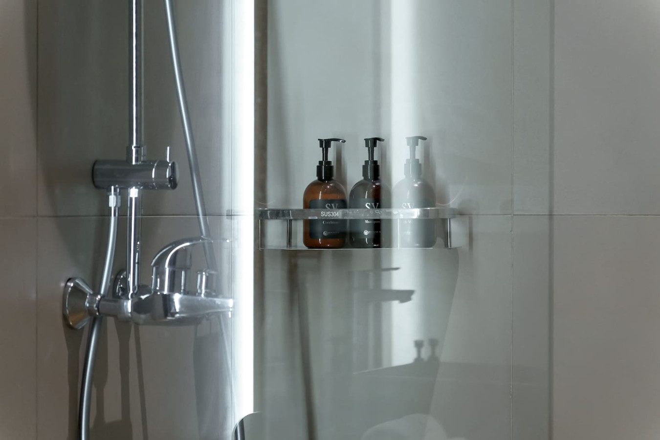 ‣ Walk-in shower + botanical bath products — offering a spa-like vibe with every rinse