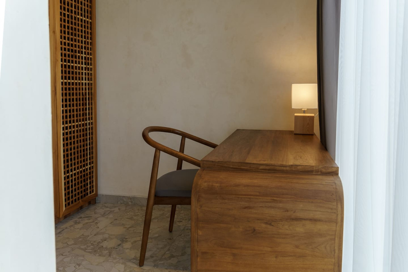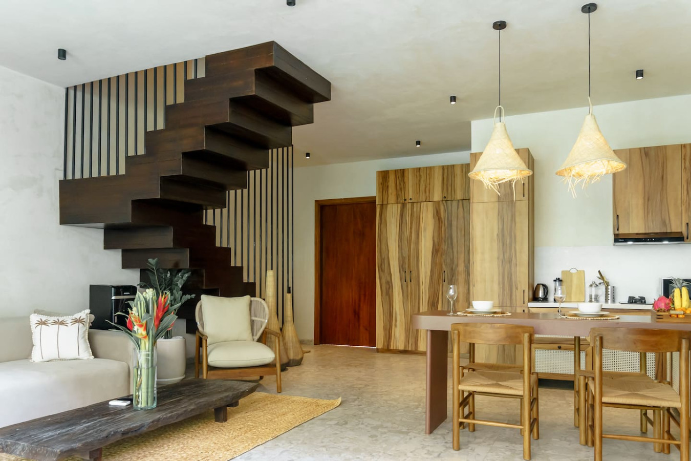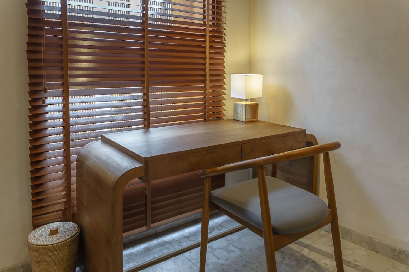 Experience seamless connectivity with high-speed WiFi and productivity with a dedicated work desk. Our villa boasts a private pool and lush tropical terrace for relaxation, alongside a fully equipped kitchen with dining area and a cozy living room for ultimate comfort.