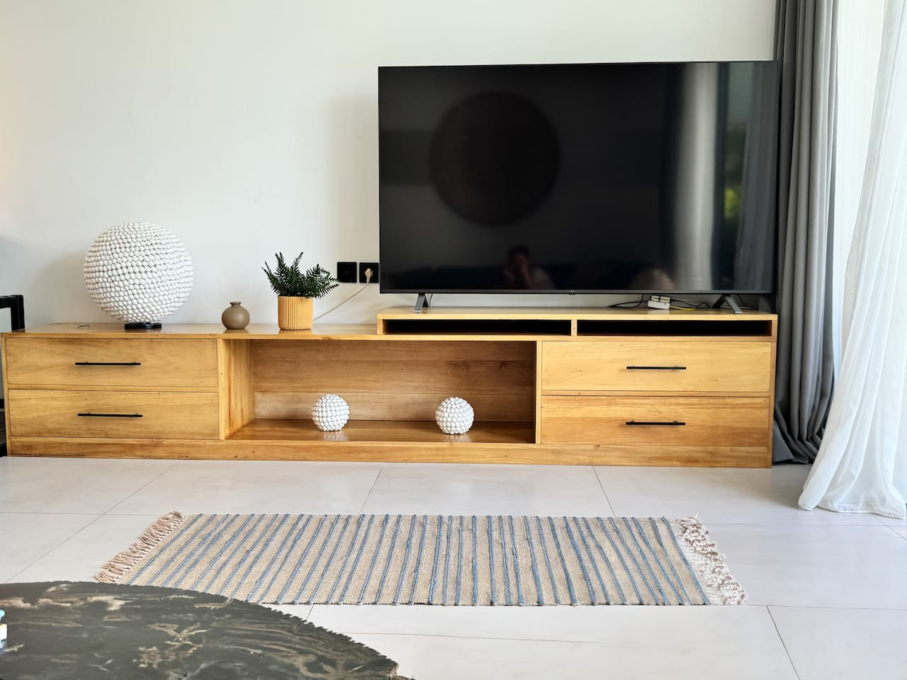 ‣ Enjoy leisure time with a large flat-screen TV featuring Netflix