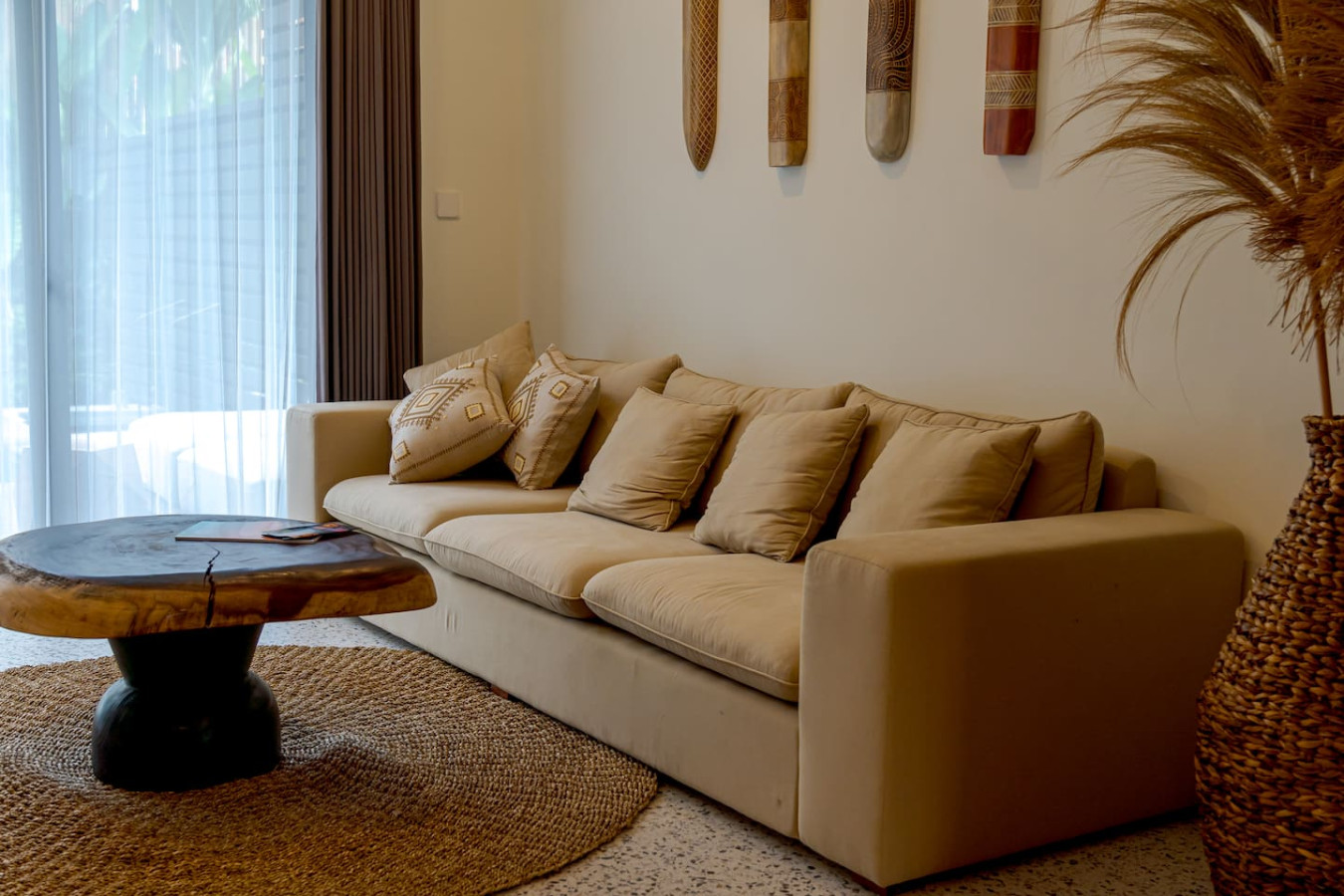Discover serenity at our deluxe 2-bedroom villa nestled in prime Batu Bolong. Each bedroom boasts an ensuite bathroom, a dedicated workspace, and expansive floor-to-ceiling windows. Recline by your private pool, or relish the sun’s warmth in our lush private garden. The beach is just a short walk from your location, and we provide round-the clock security and exceptional hospitality.